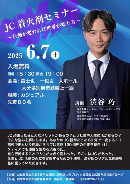 日本青年会議所九州地区大分ブロック協議会様 『JC着火剤セミナー~行動が変われば世界が変わる~』へ 弊社代表 渋谷巧が登壇いたしました。 空き家、お家、ガレージなどの解体費用、いくらかかるか気 […]