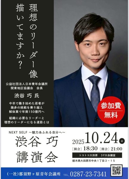 那須野ヶ原青年会議所様 『NEXT SELF~魅力あふれる自分へ~』へ 弊社代表 渋谷巧が登壇いたしました。 空き家、お家、ガレージなどの解体費用、いくらかかるか気になりますよね? \解体工事 […]