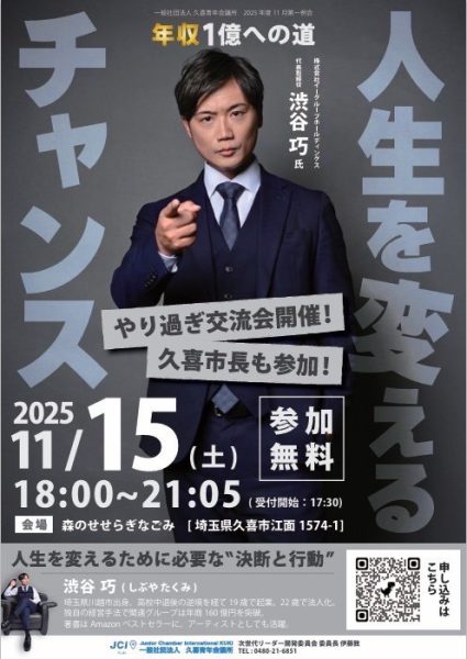 加須青年会議所様 『人生観がたったの90分で一変!あなたの決断は?』へ 弊社代表 渋谷巧が登壇いたしました。