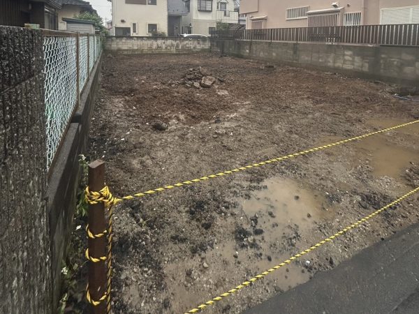 構造は木造で、植栽撤去・外壁撤去・土間コンクリート撤去・アスファルト舗装・アスベスト検体検査