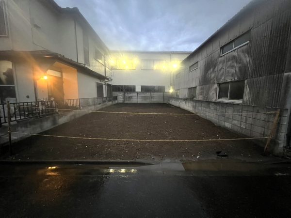 構造は木造で、植栽撤去・敷地内石撤去・外構ブロック撤去・土間コンクリート撤去・アスベスト撤去・アスベスト検体検査