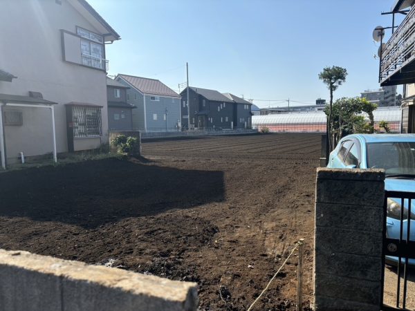 構造は木造で、植栽撤去・敷地内石撤去・土間コンクリート撤去・アスベスト検体検査