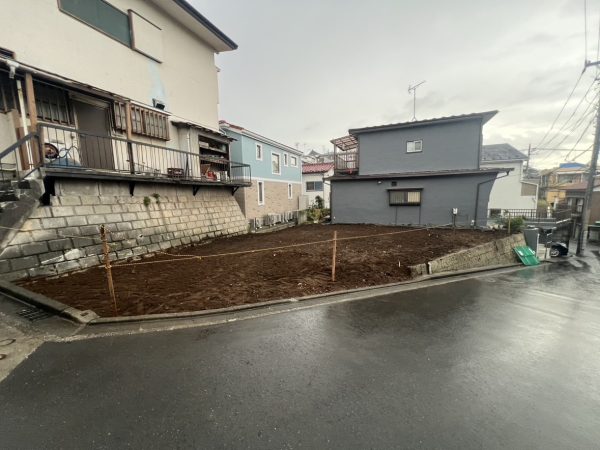 構造は木造で、植栽撤去・外構ブロック撤去・土間コンクリート撤去・アスベスト検体検査